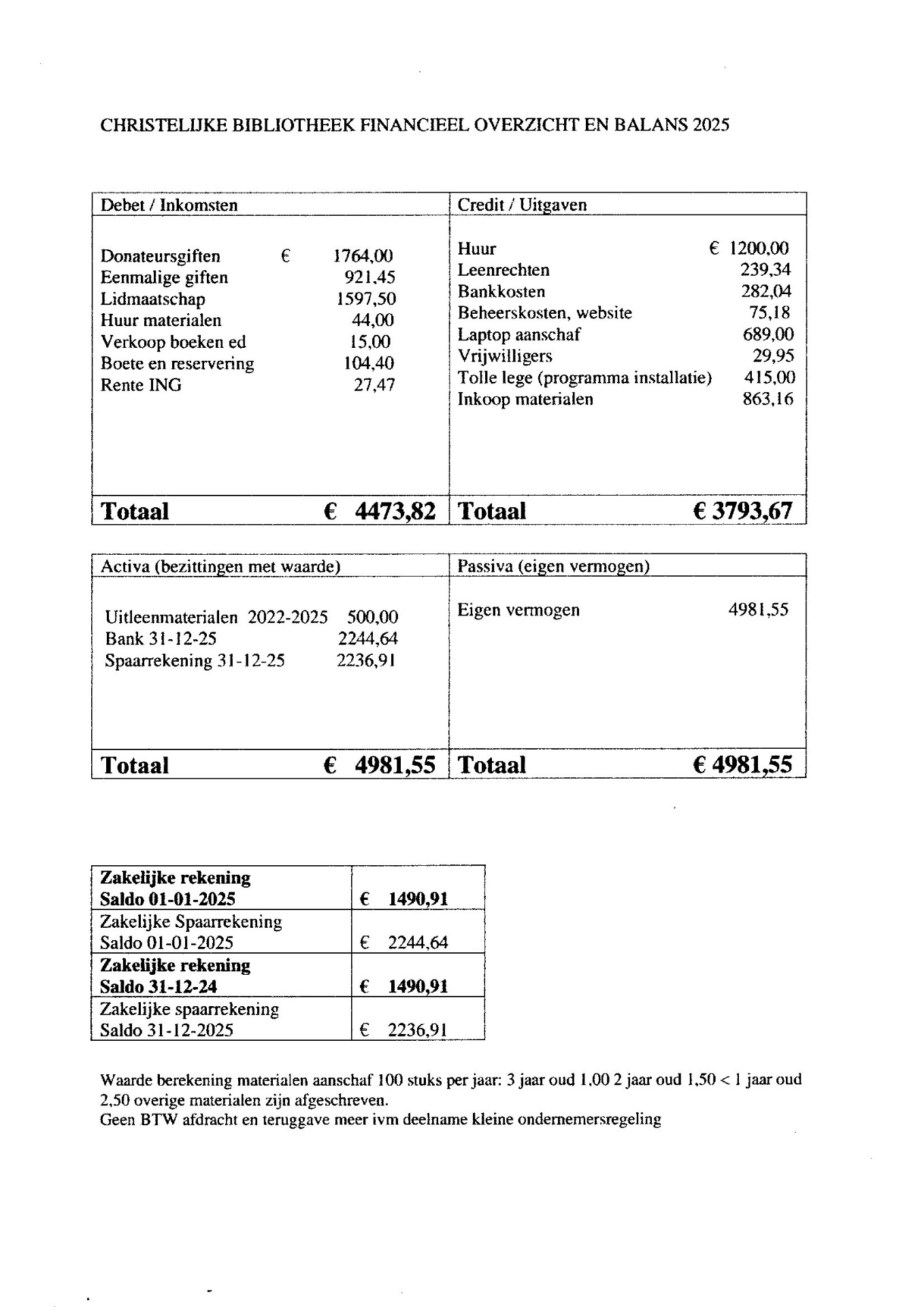 Financiële verantwoording van de bibliotheek over het jaar 2025